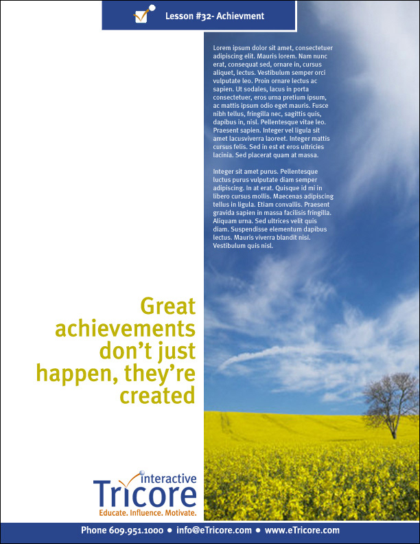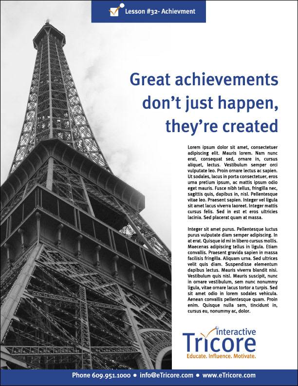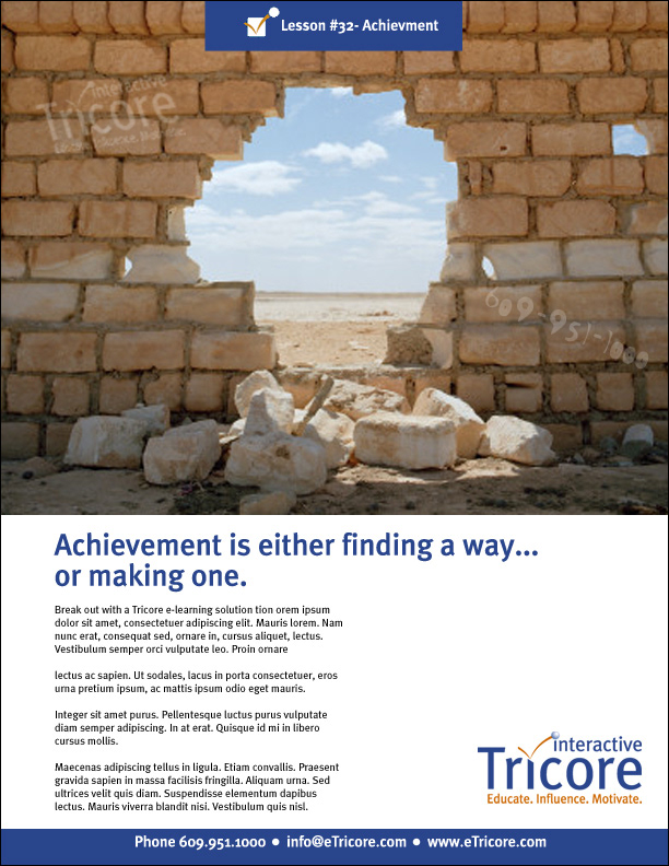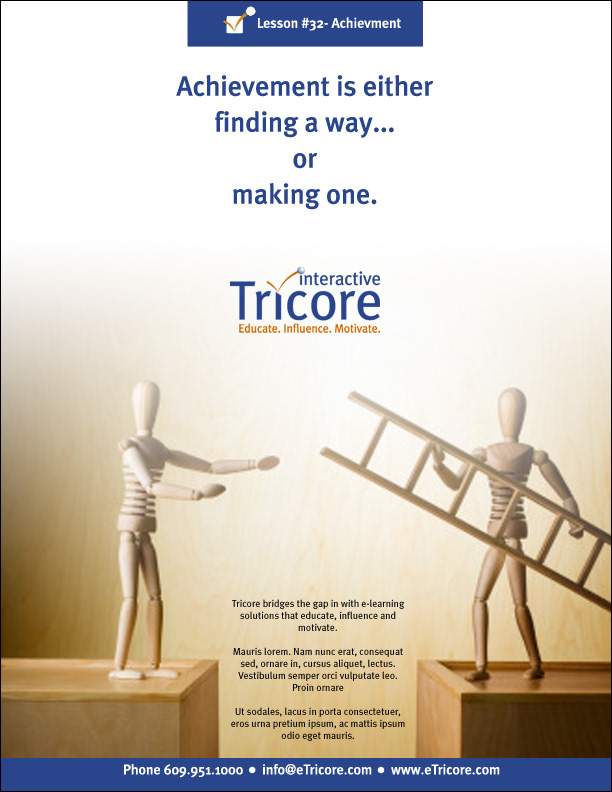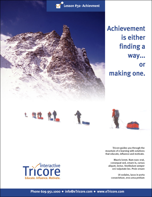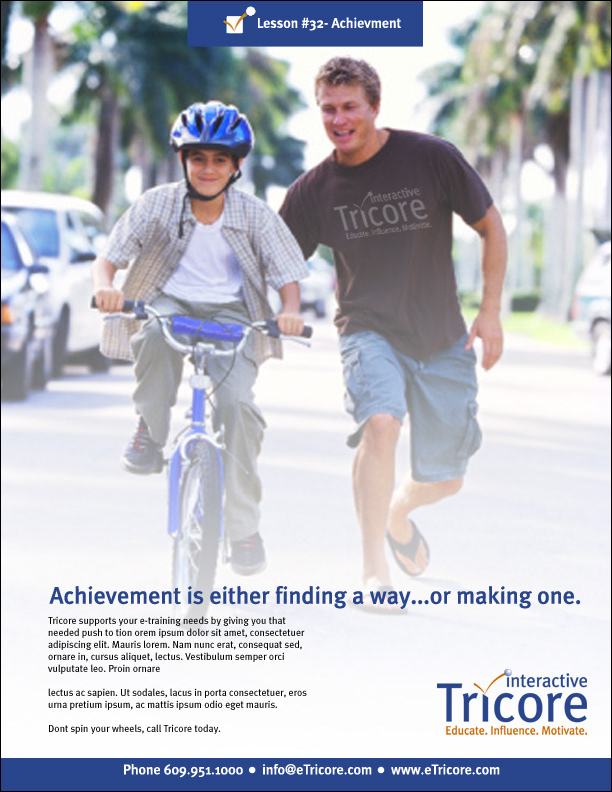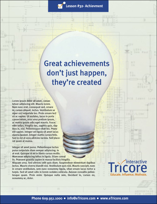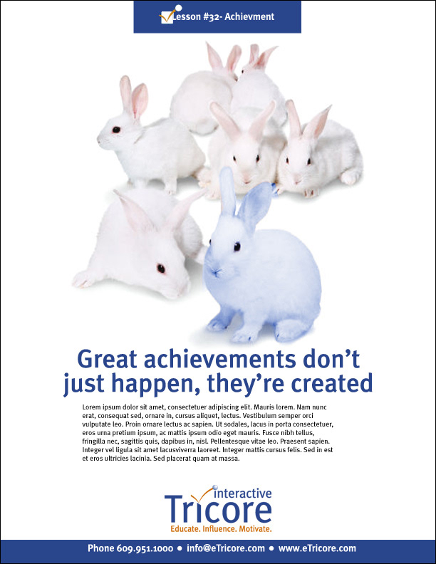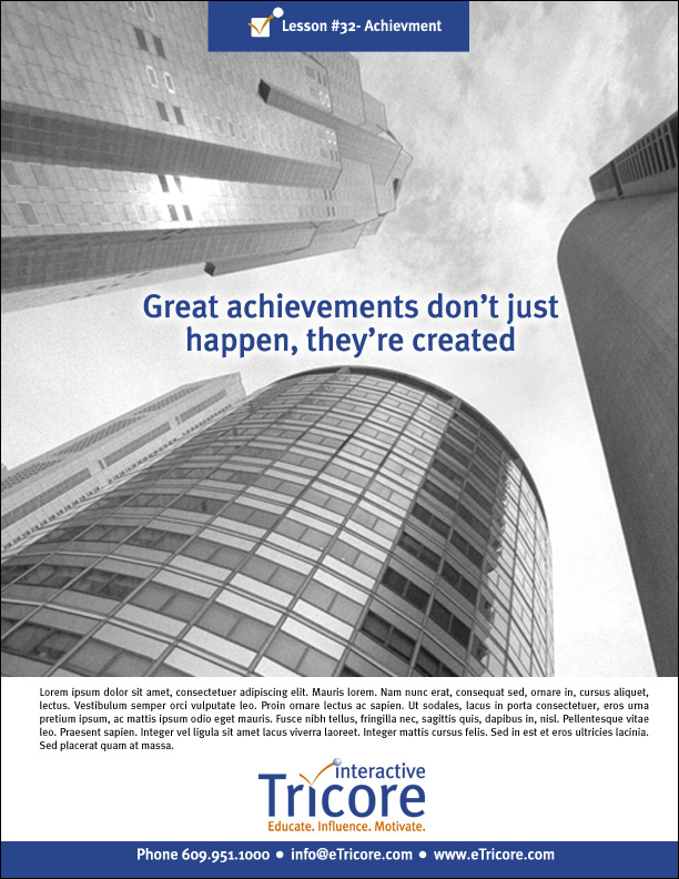 After meeting with the owners of the business to clarify the goals of the advertisement and to better identify the position of Tricore Interactive within the life sciences training industry a creative brief was defined. The basis of the creative brief we defined as equating Tricore Interactive differentiators as and imply with the copy this is what Tricore can do for you. We also choose to insert a subtle humorous approach into ideation (fun) which would be used as the eye-catchy hero visual to attract attention. We also agreed to keeping the visual look of the advertisement would be straightforward, meaning simple and quick in its visual communication style with a dominant ‘hero’ image and headline.